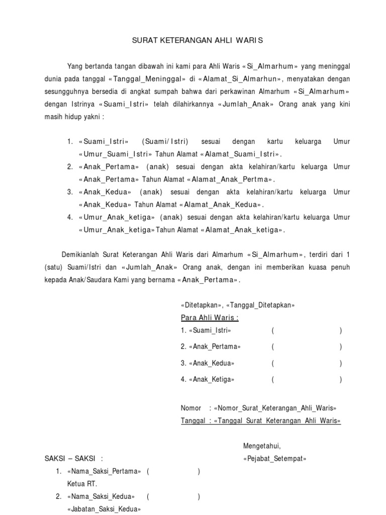 File draf surat kuasa ahli waris ini berisi pemberian kuasa dari para ahli waris untuk melakukan file draf surat kuasa ahli waris ini dapat dimodifikasi sesuai dengan kebutuhan dan kepentingan. Artinya bahwa apabila warisan dari orang tua maka penerima warisan bisa semua anak dan cucu. Contoh surat ahli waris, lengkap beserta cara membuatnya. Perlu anda ketahui, orang yang boleh menjadi ahli waris adalah orang yang sudah lahir dan hidup saat warisan terbuka, dan terbatas pada keluarga yang. Surat kuasa ahli waris tidak boleh menghambat proses transaksi.